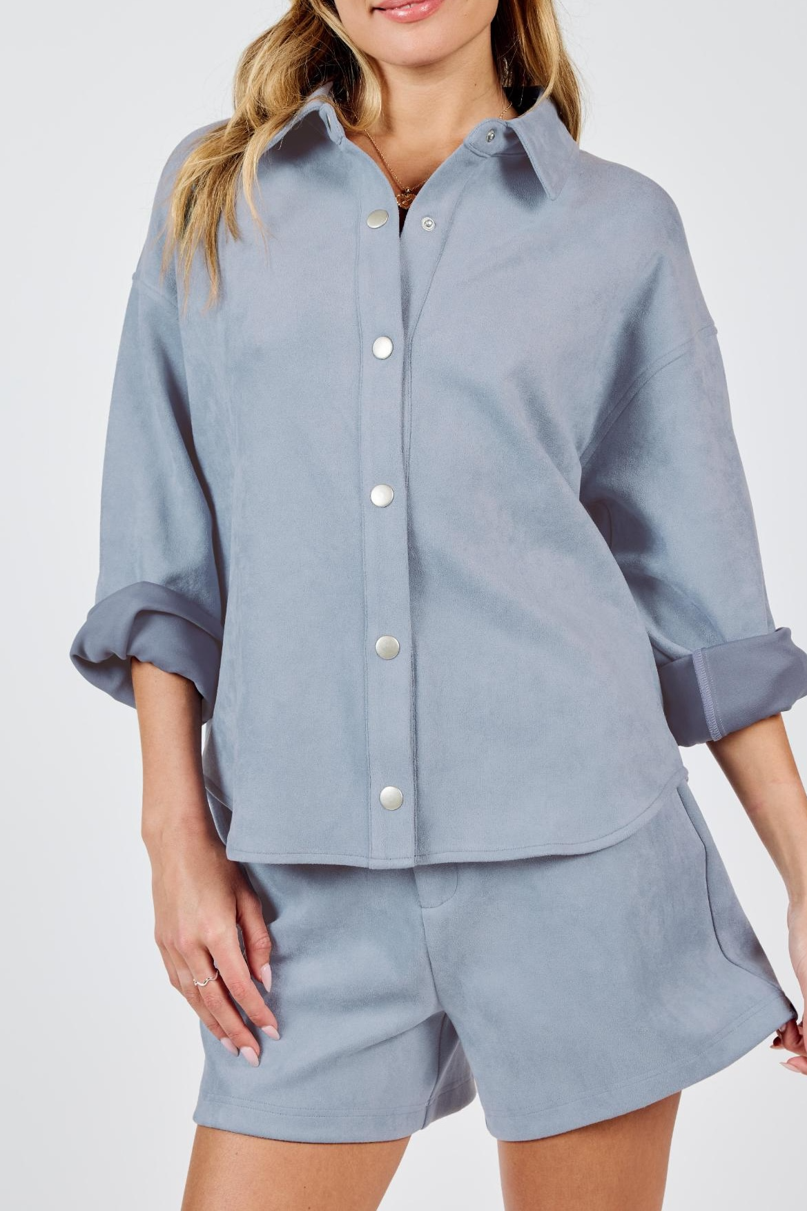 Add a touch of luxe to your casual wardrobe with the Align Faux Suede Shacket. This versatile piece effortlessly combines the structure of a jacket with the relaxed fit of a shirt, making it an essential layering staple. Featuring snap-button closures and a soft, velvety finish, it delivers both comfort and style in equal measure. Perfect for transitioning between seasons, this shacket pairs beautifully with everything from jeans to dresses, making it a must-have for elevating any outfit.