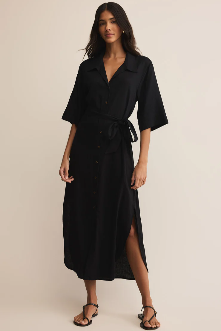 Relaxed yet refined, this washed linen midi dress features a button front, collared neckline, and a removable self-belt for easy styling. A high slit and shirttail hem add just the right amount of movement, whether you're dressing it up or keeping it casual.