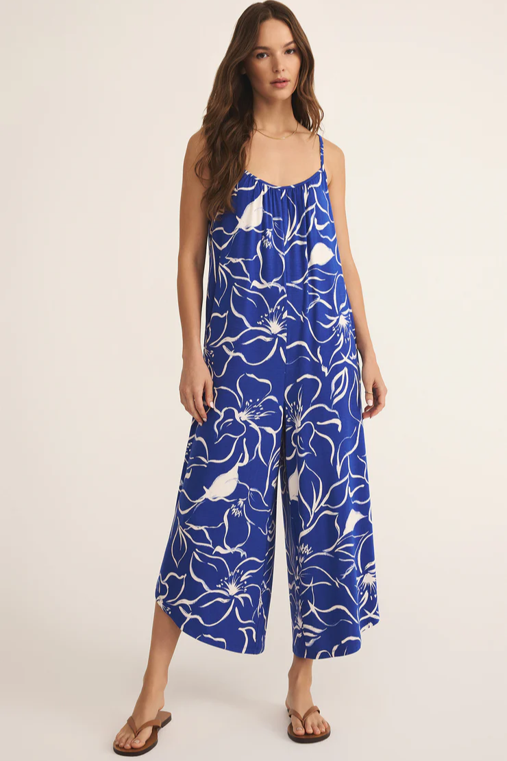 With a bold tropical floral print and flared cropped leg, this scoop neck jumpsuit brings effortless vacation vibes. Adjustable spaghetti straps and hidden side pockets make it as practical as it is pretty.