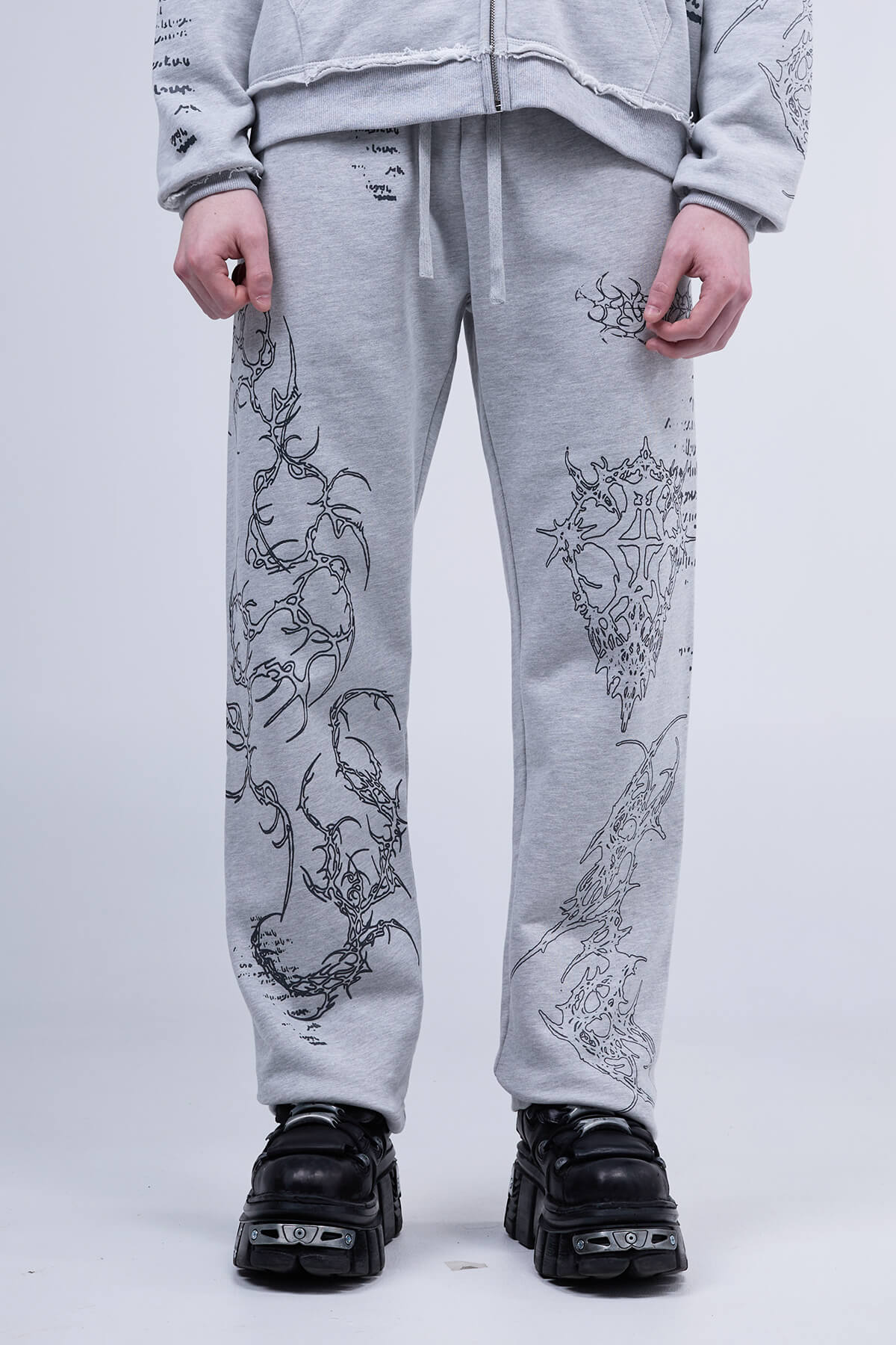 These sweatpants feature an all-over screen print with a comfy straight-leg fit and two side pockets. True to size fit.