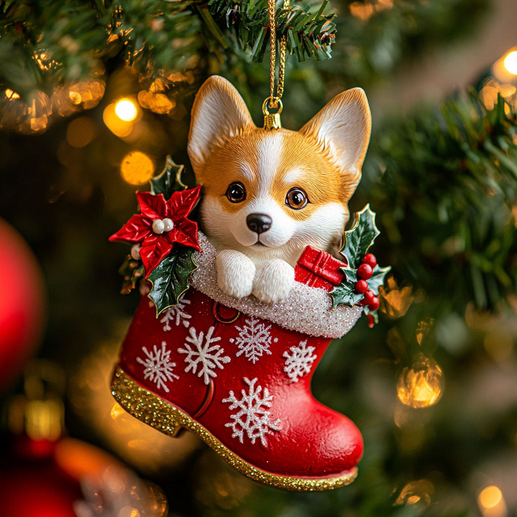 Holiday Corgi Boots CW2310035CL Christmas Ornament