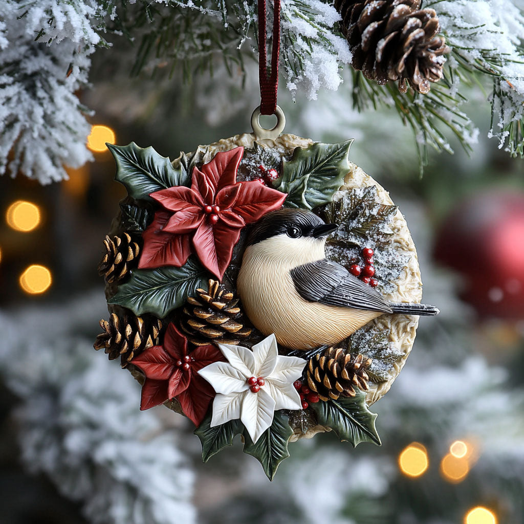 Holiday Wreath Chickadee WN2210029CL Christmas Ornament