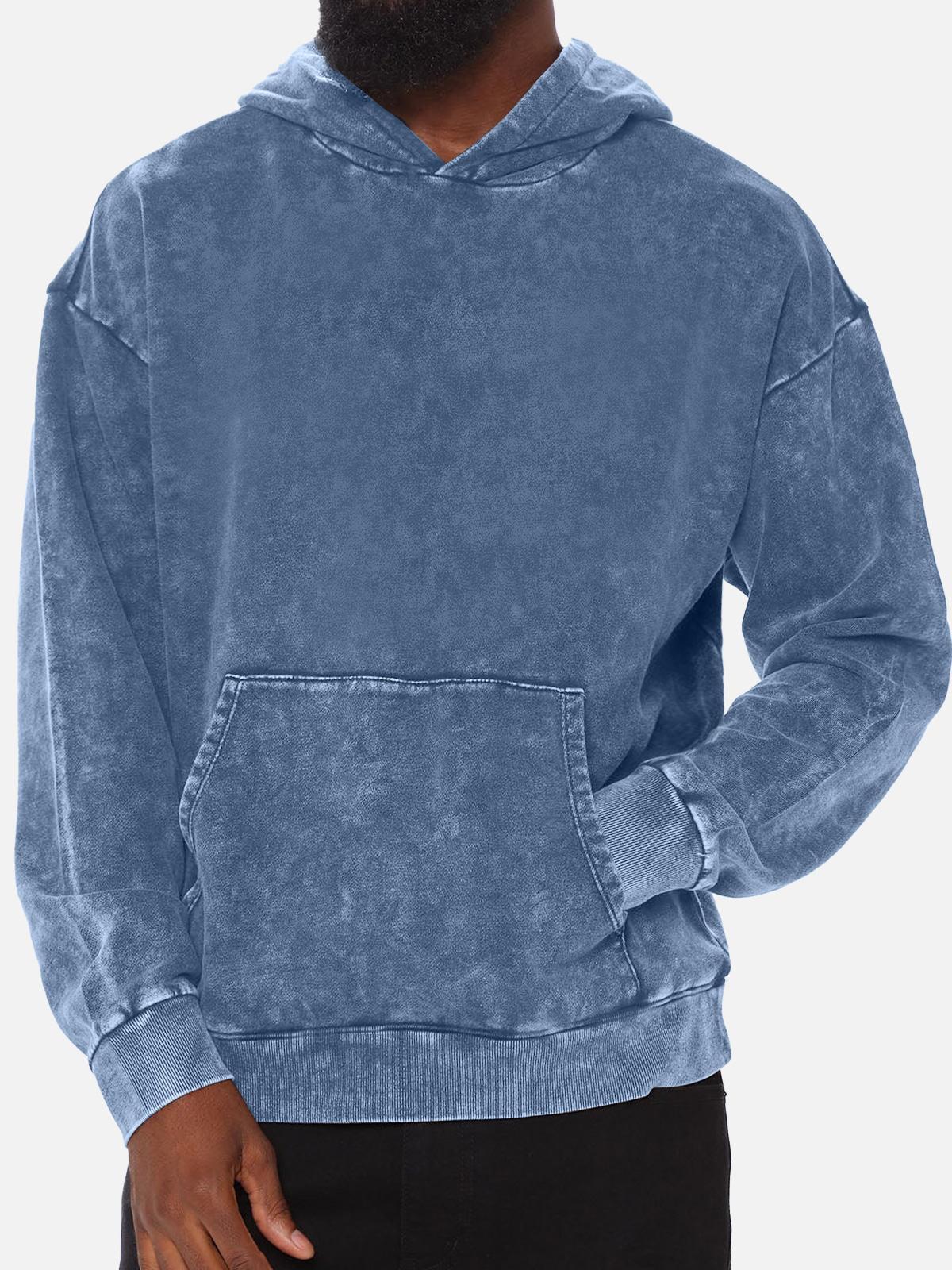 Men's Casual Pure Cotton Washed And Distressed Hooded Solid Color Sweatshirt
