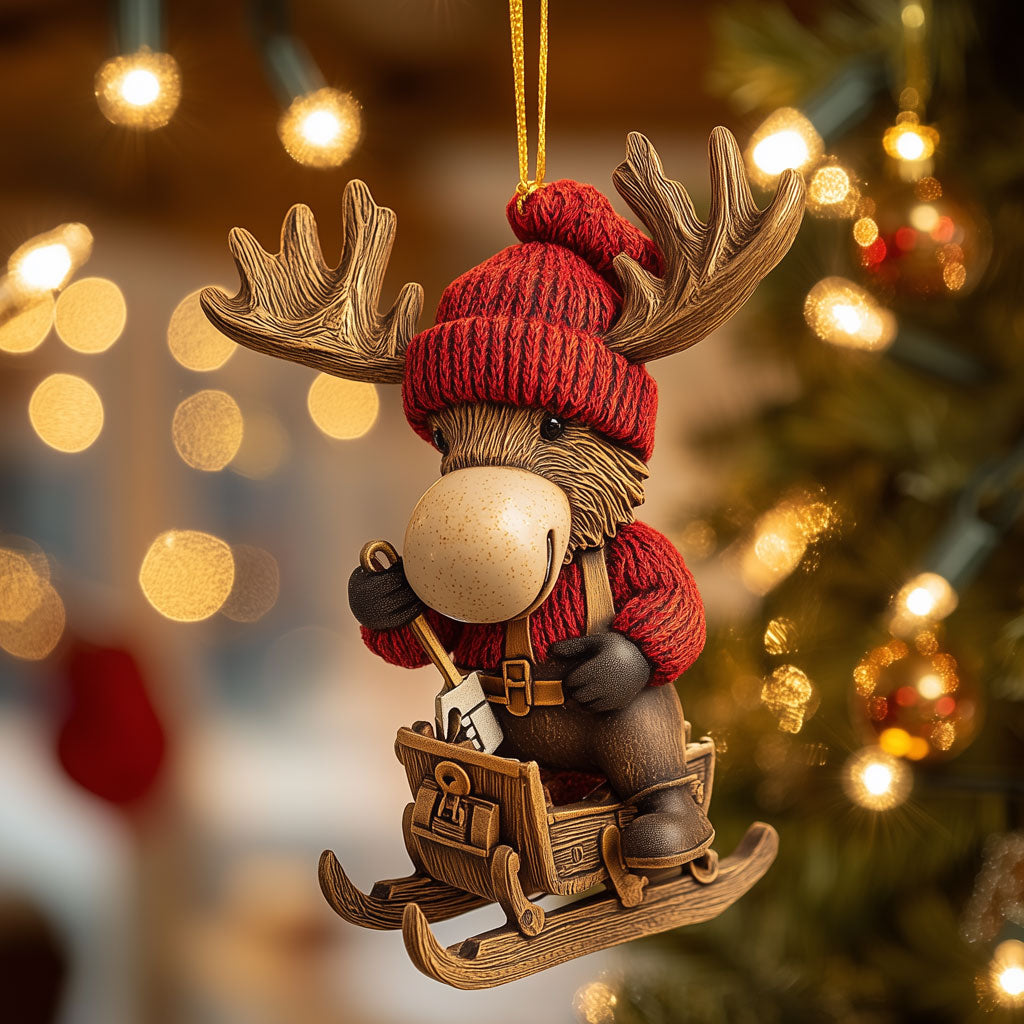 Moose Fixing Sleigh LT2210011CL Christmas Ornament