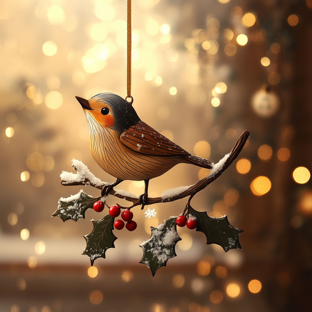 Robin On Holly Branch LT2210025CL Christmas Ornament