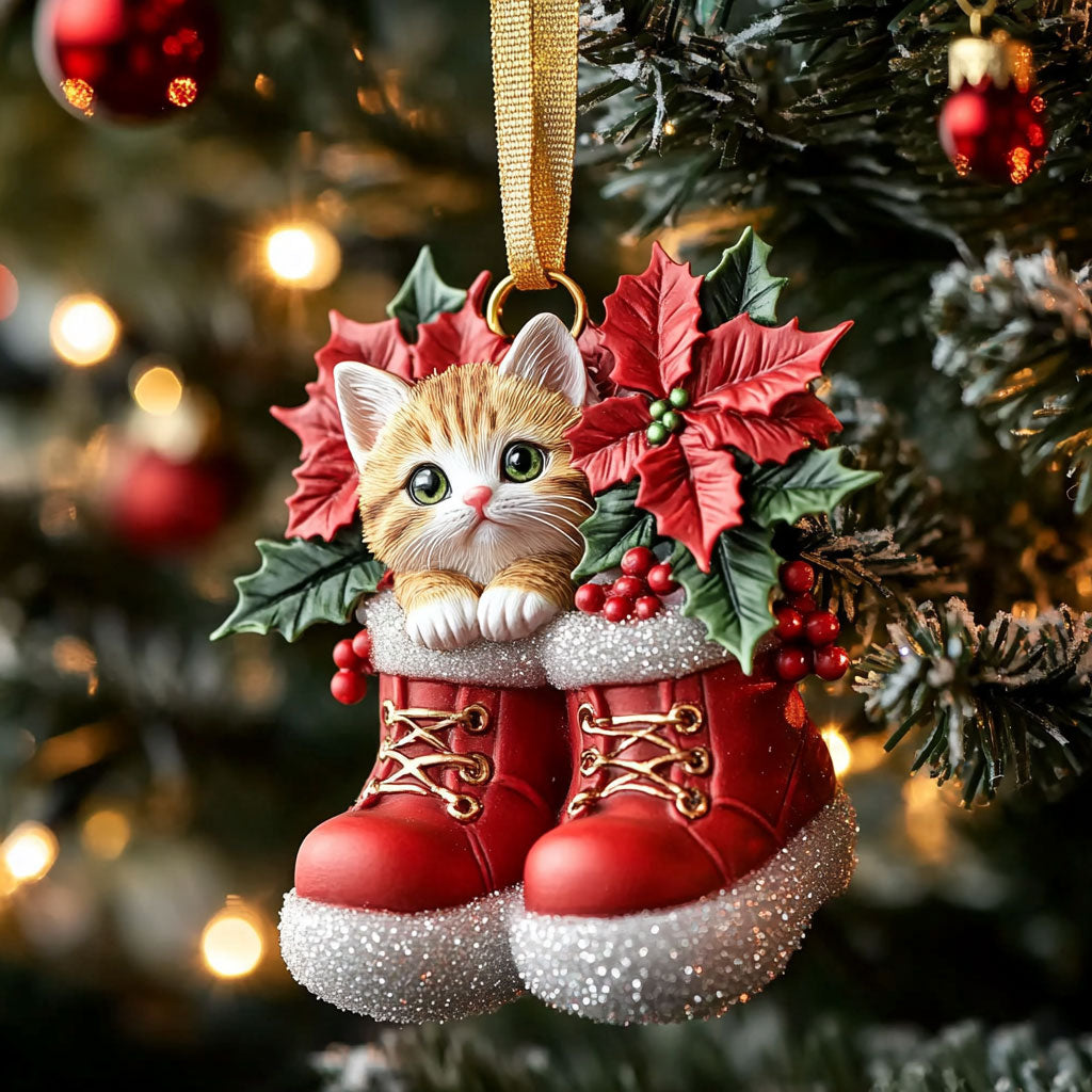 Santa Boot Cat WN0811063CL Christmas Ornament
