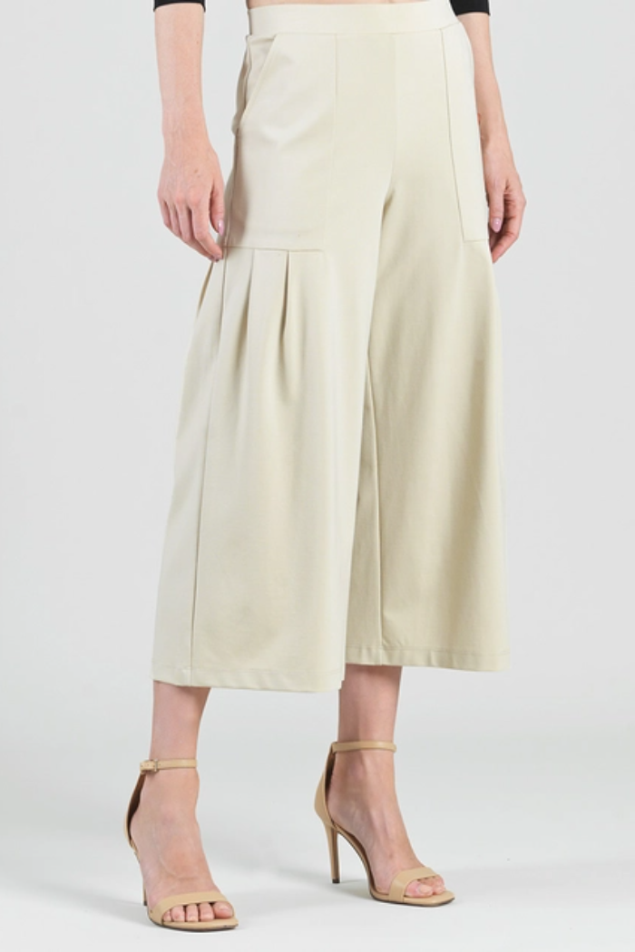 Our Rayon-Ponte Knit Pleated Gaucho Pocket Pant combines the best of both worlds! A truly versatile pant that works for both warm and cool climates! Featuring a loose-fitting wide-leg cropped silhouette, 1.75” pull-on elastic waistband, and side pockets with gorgeous front and back pleated details, designed to naturally flow against the body.