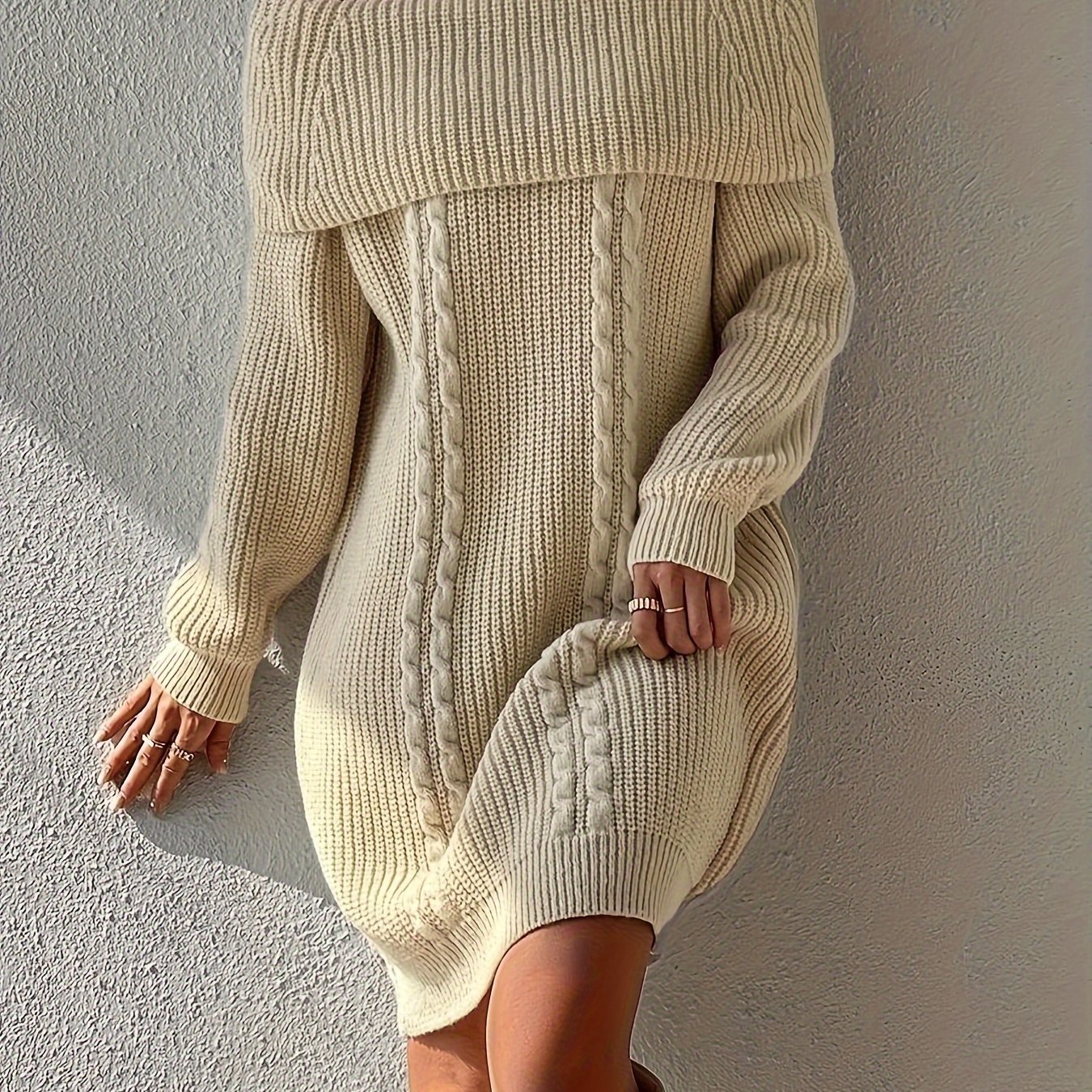 Stylish Plus Size Cable Knit Off Shoulder Sweater Dress - Women's Plus Size Sweater Dresses with Long Sleeves and Chic Design - Cozy Winter Fashion for Curvy Women