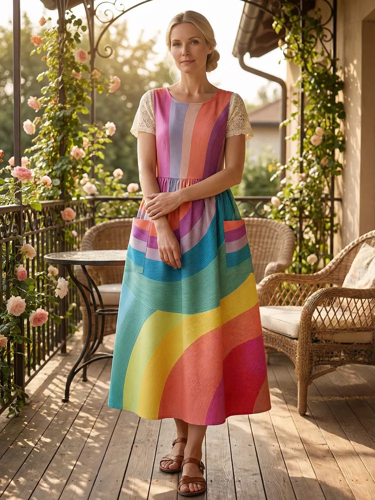 Vintage Rainbow Gradient Stripe Apron & Dress (2-in-1)