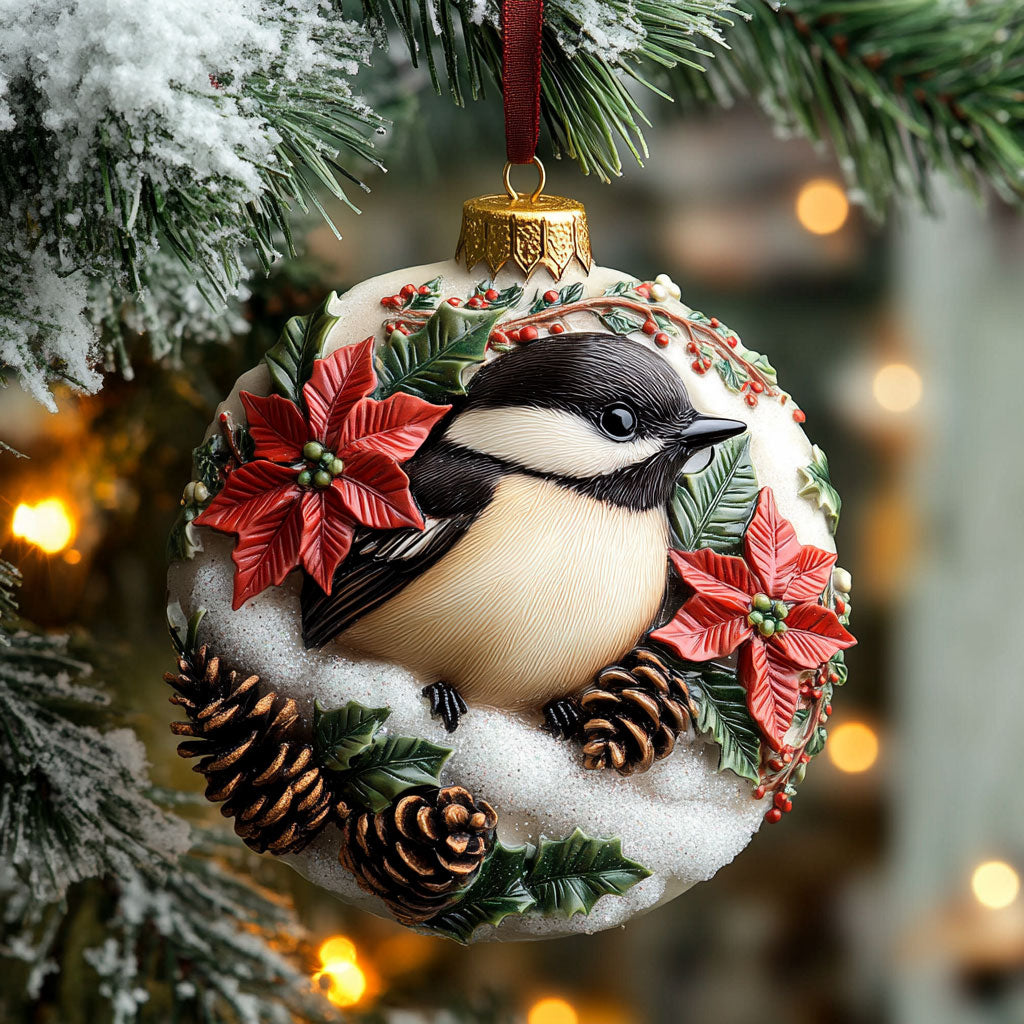 Winter Pine Chickadee WN2210069CL Christmas Ornament
