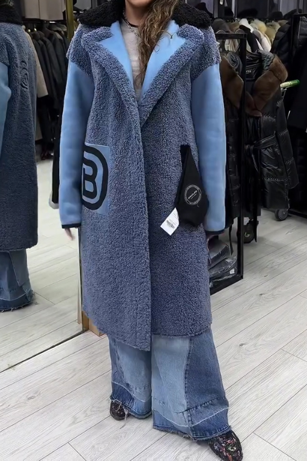 Women Casual Plush Striped Pattern Reversible Jacket