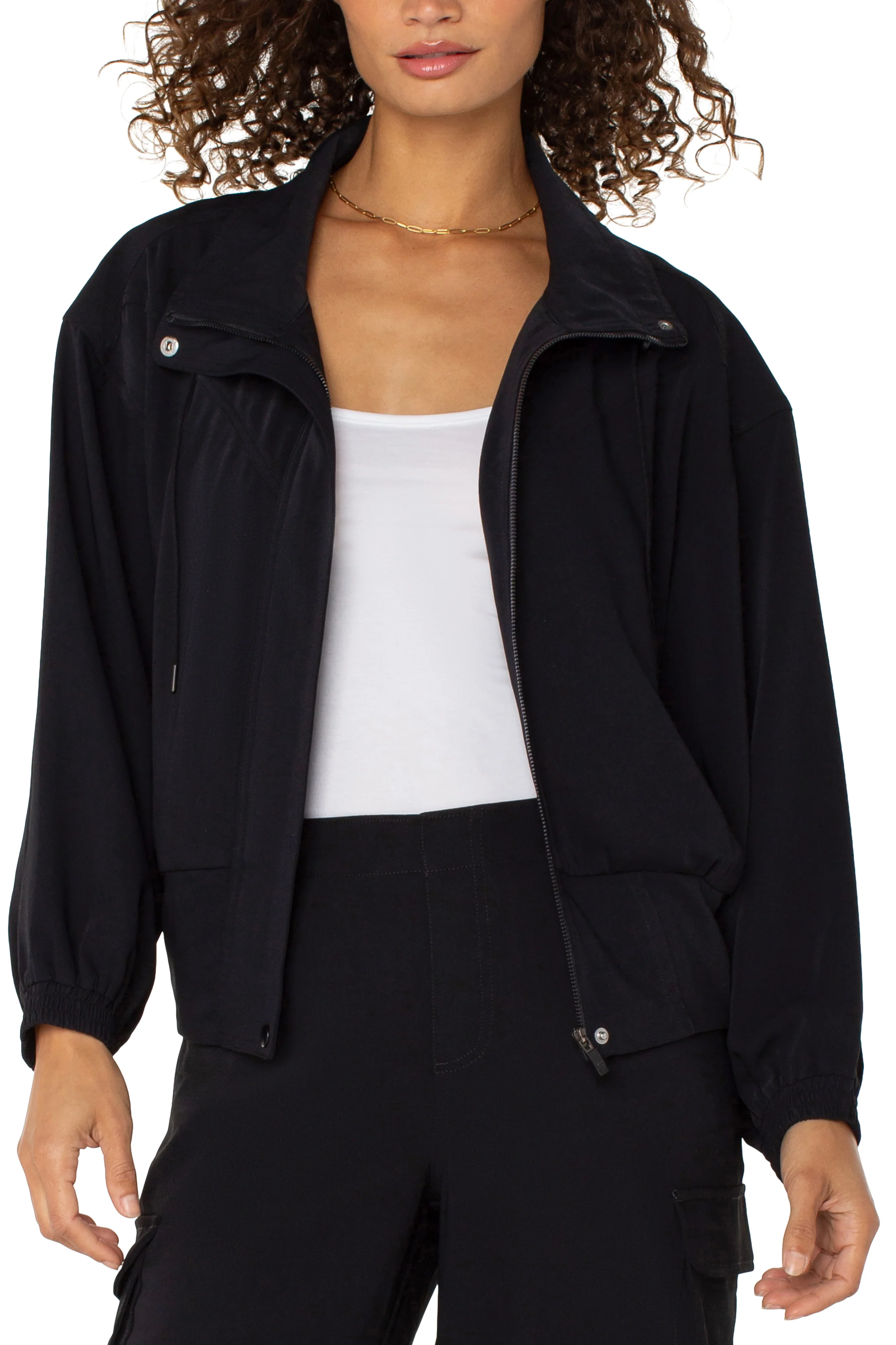 Get ready to turn heads with this trendy jacket featuring dolman sleeves, a concealed zipper, and an elasticized hem. Plus, the wide mock neck collar and adjustable drawcords add an extra touch of style. Pair with the Parachute Cargo Pant for casual outings and make a statement!